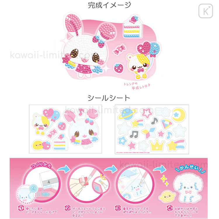 Japan Kamio DIY Rhinestone Art Sticker Set - Kira Usa Twins Bubble Rabbit : Heisei Retro Pink
