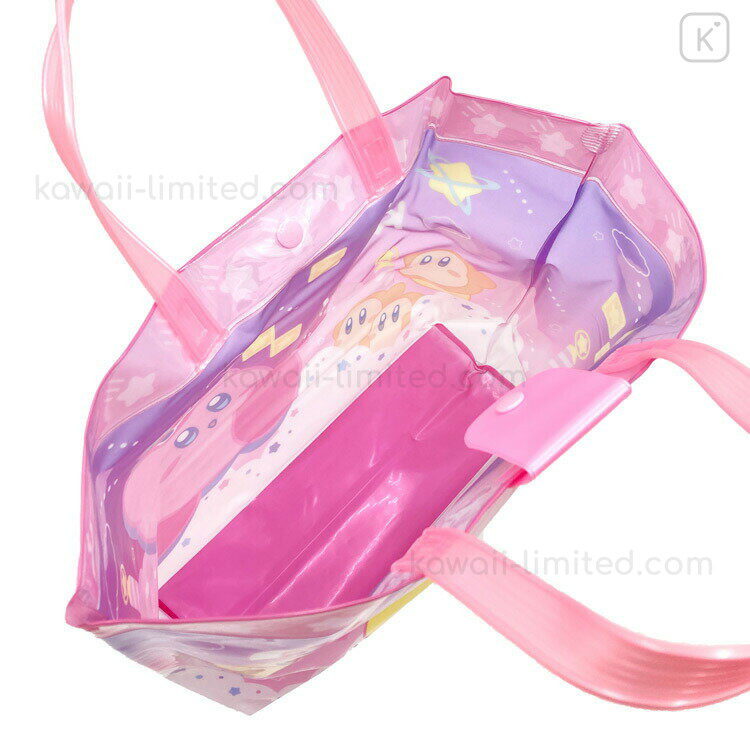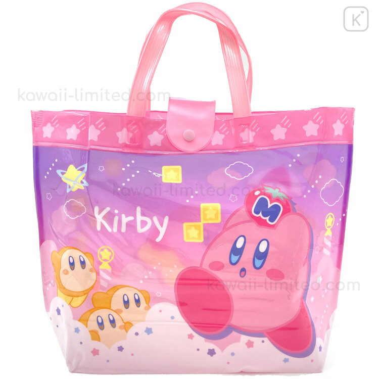 Japan Kirby Waterproof Vinyl Beach Bag & Pool Tote - Kirby & Waddle Dee : Sky Pink