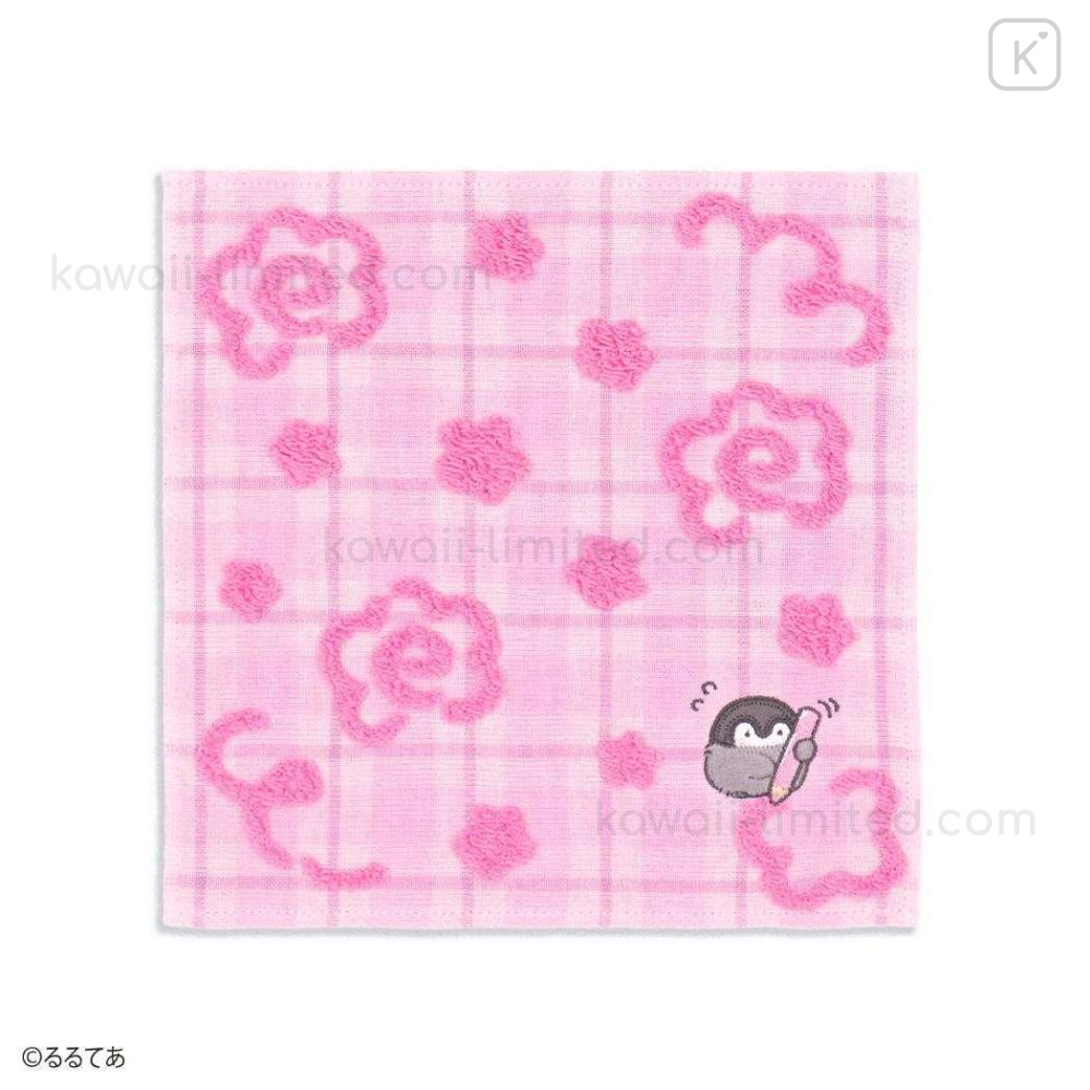 Japan Koupen Chan Gauze Towel Handkerchief - Tartan Flower Pink