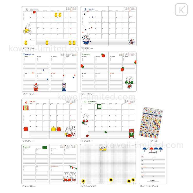 Japan Miffy B6 Planner Monthly & Weekly Schedule Book - Miffy : Grey 2026