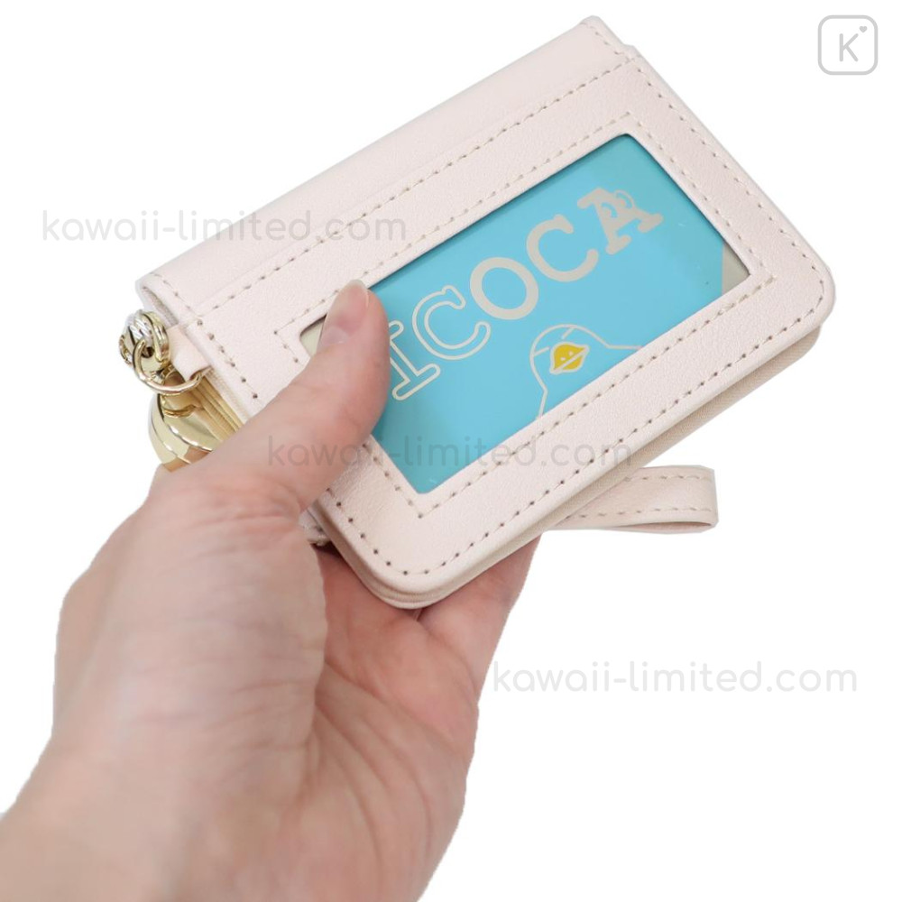 Japan Miffy Bifold Pass Case Card Holder with Reel - Miffy : Friend Beige