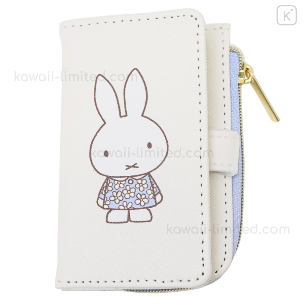 Japan Miffy Key Case Card Holder & Coin Case - Miffy : Blue Flower Dress White
