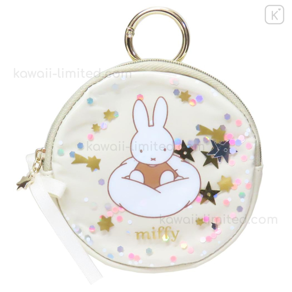 Japan Miffy Mini Pouch with Carabiner - Miffy : Dreamy Night Beige Ribbon