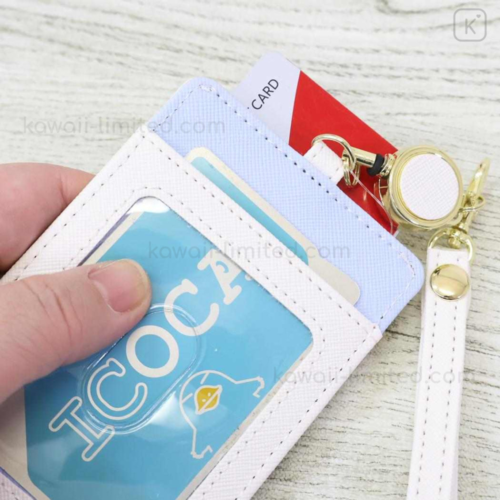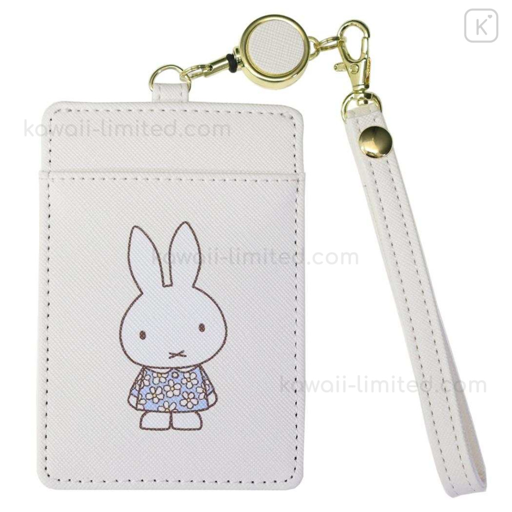 Japan Miffy Pass Case Card Holder & Reel - Miffy : Blue Flower Dress White
