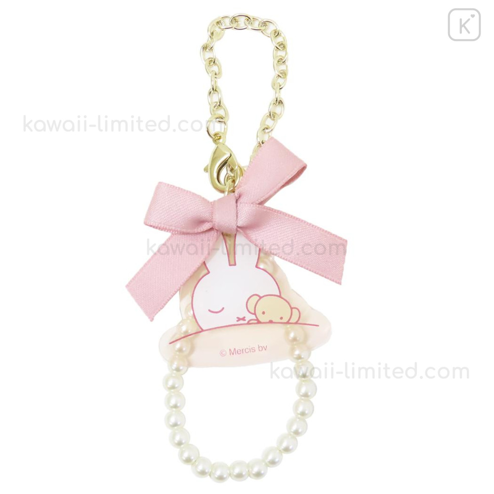 Japan Miffy Pearl Mascot Bag Charm Acrylic Keychain - Miffy : Dreamy Night Pink Ribbon