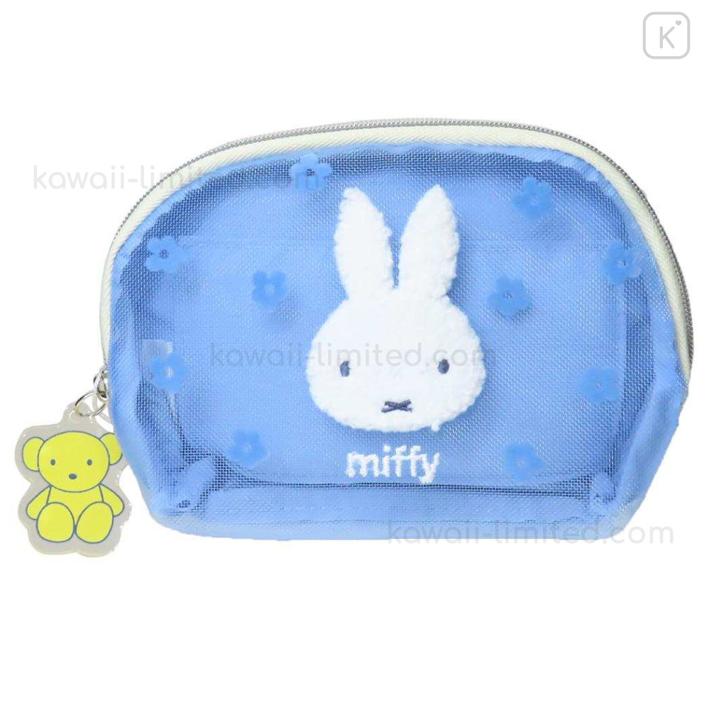 Japan Miffy Pouch & Tissue Case - Miffy : Mesh Flower Blue Bear