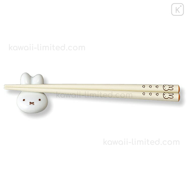 Japan Miffy Wooden Chopsticks 17cm With Chopstick Rest - Miffy : Beige