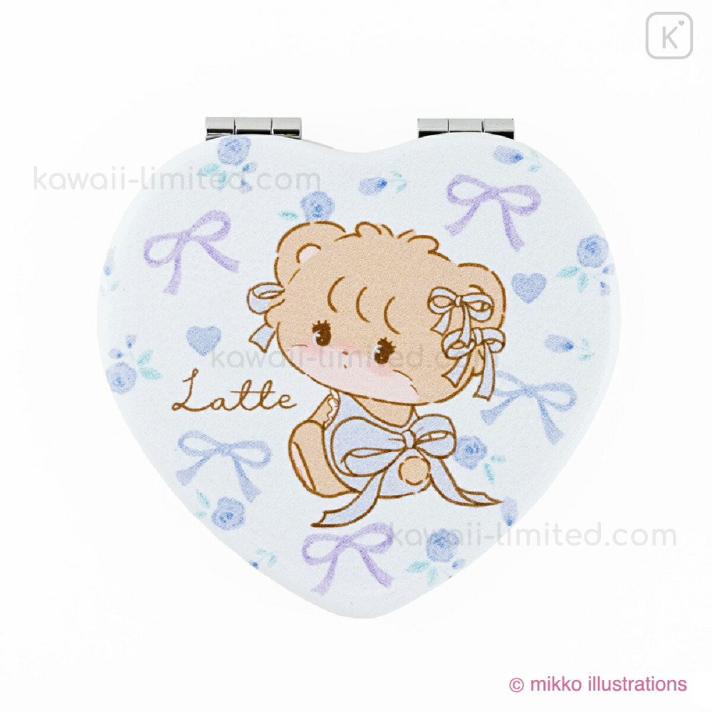 Japan Mikko Illustrations 2-sided Compact Mirror - Latte Ribbon Heart Blue Pink