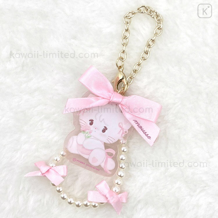 Japan Mikko Illustrations Acrylic Keychain Bag Charm - Mousse Ribbon Pearl