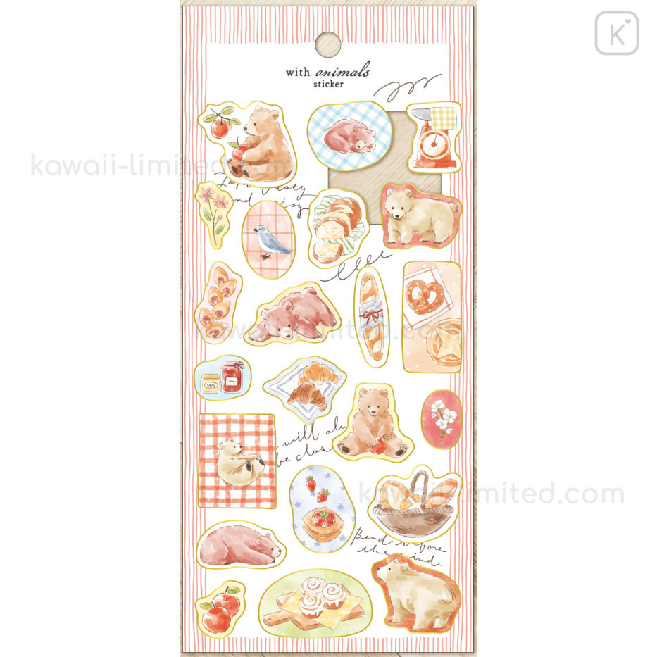 Japan Mind Wave Illustration Sticker Sheet - Bear with Animals Gold Foil