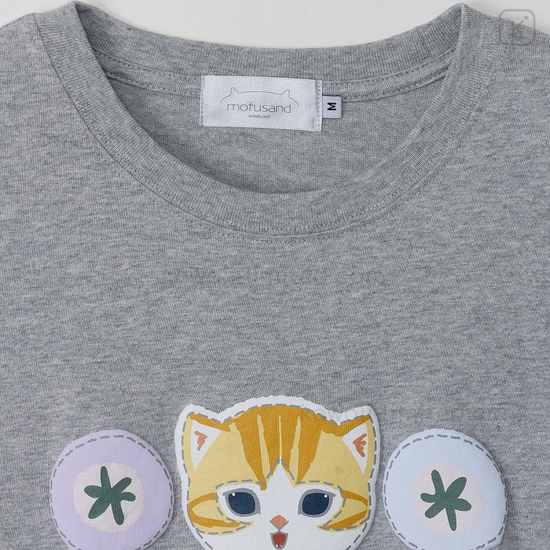 Japan Mofusand 3/4 Sleeve T-Shirt (L) - Brown Tabby Mixed Gray