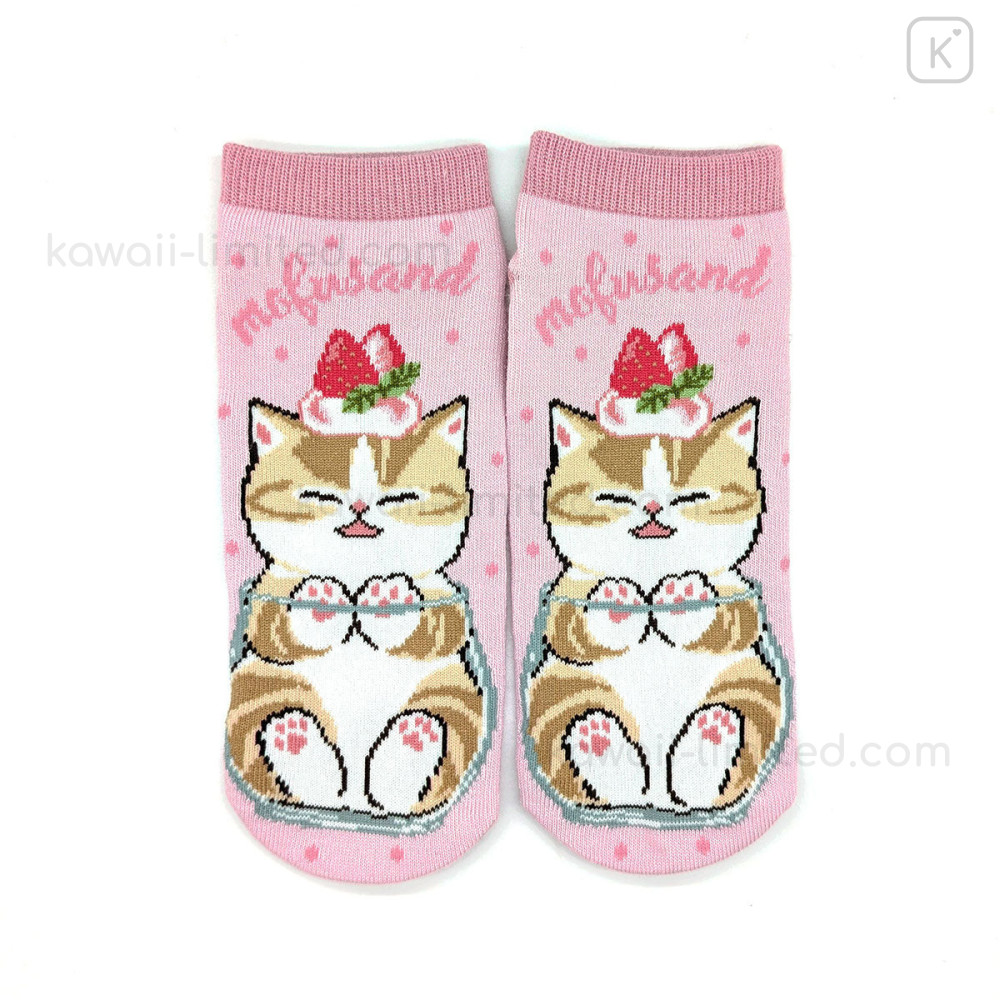 Japan Mofusand Ankle Socks - Cat : Strawberry Parfait Pink