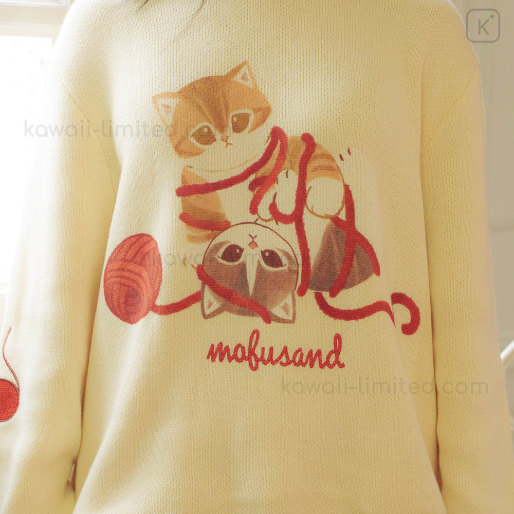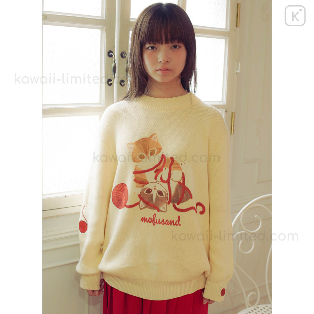 Japan Mofusand Crew Neck Sweater (L) - Cat Yarn Ball Beige