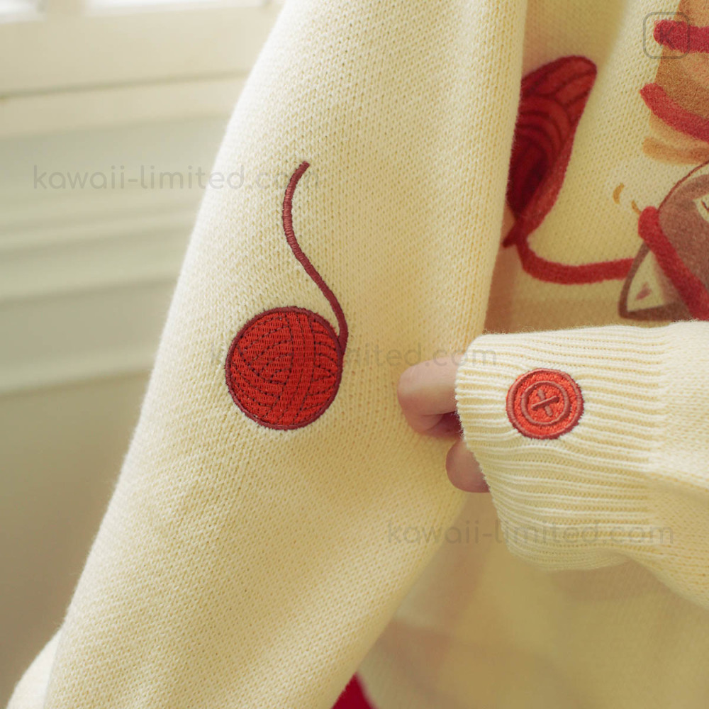 Japan Mofusand Crew Neck Sweater (M) - Cat Yarn Ball Beige