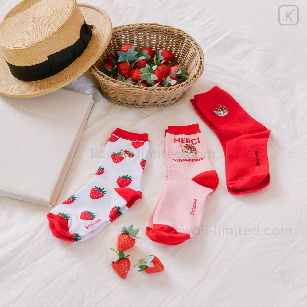 Japan Mofusand Embroidered Low Crew Socks - Mofusand Merci Strawberry Fruit Cat Red