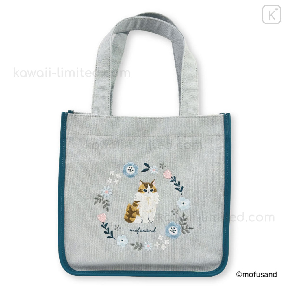 Japan Mofusand Embroidered Mini Tote Bag - Mofusand Botanical Long-haired Norwegian Forest Cat