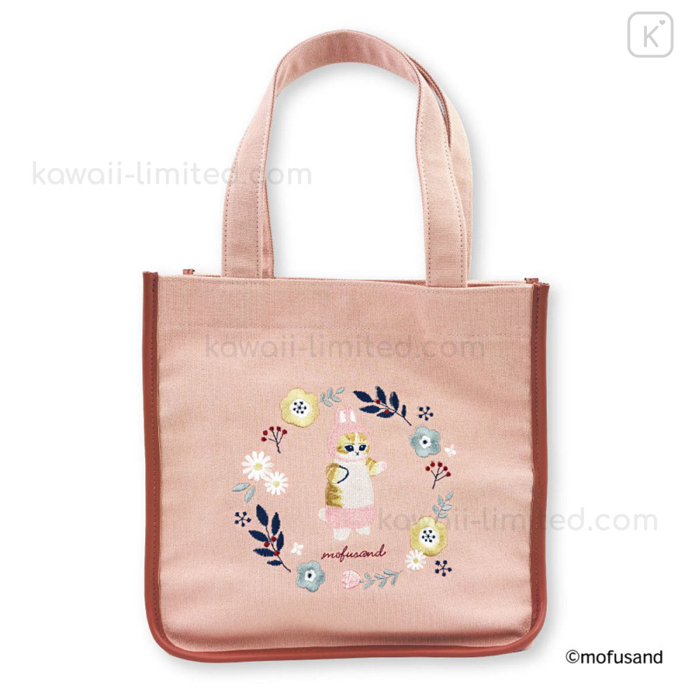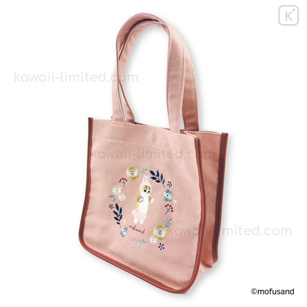 Japan Mofusand Embroidered Mini Tote Bag - Mofusand Botanical Rabbit Cat