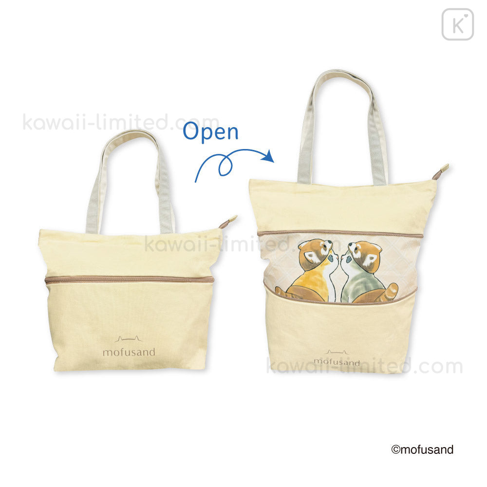Japan Mofusand Expandable Tote Bag (L) - Red Panda Cat Nyan Beige