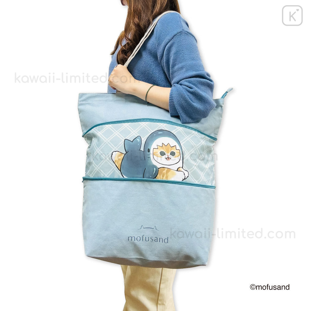 Japan Mofusand Expandable Tote Bag (L) - Shark Cat Nyan Blue