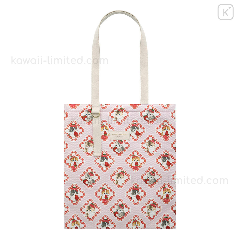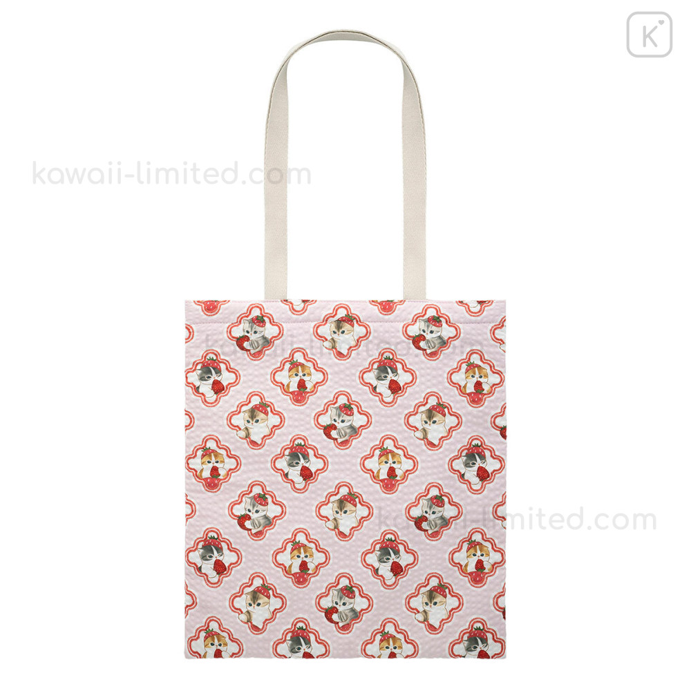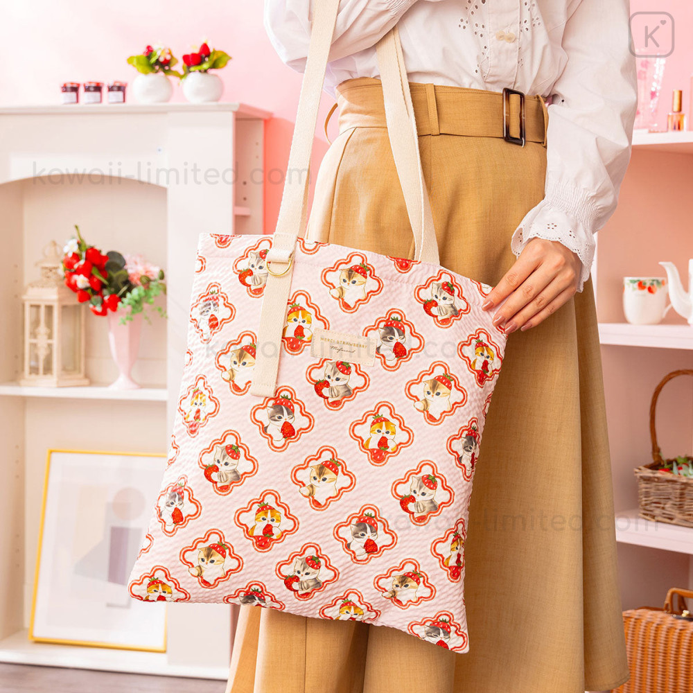 Japan Mofusand Flat Tote Bag - Mofusand Merci Strawberry Fruit Cat Pink
