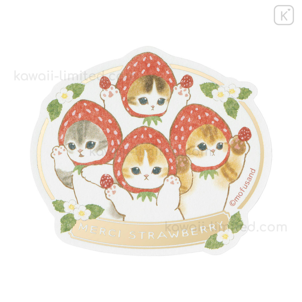 Japan Mofusand Gold Foil Vinyl Sticker - Mofusand Merci Strawberry Fruit Cat Friends Paw