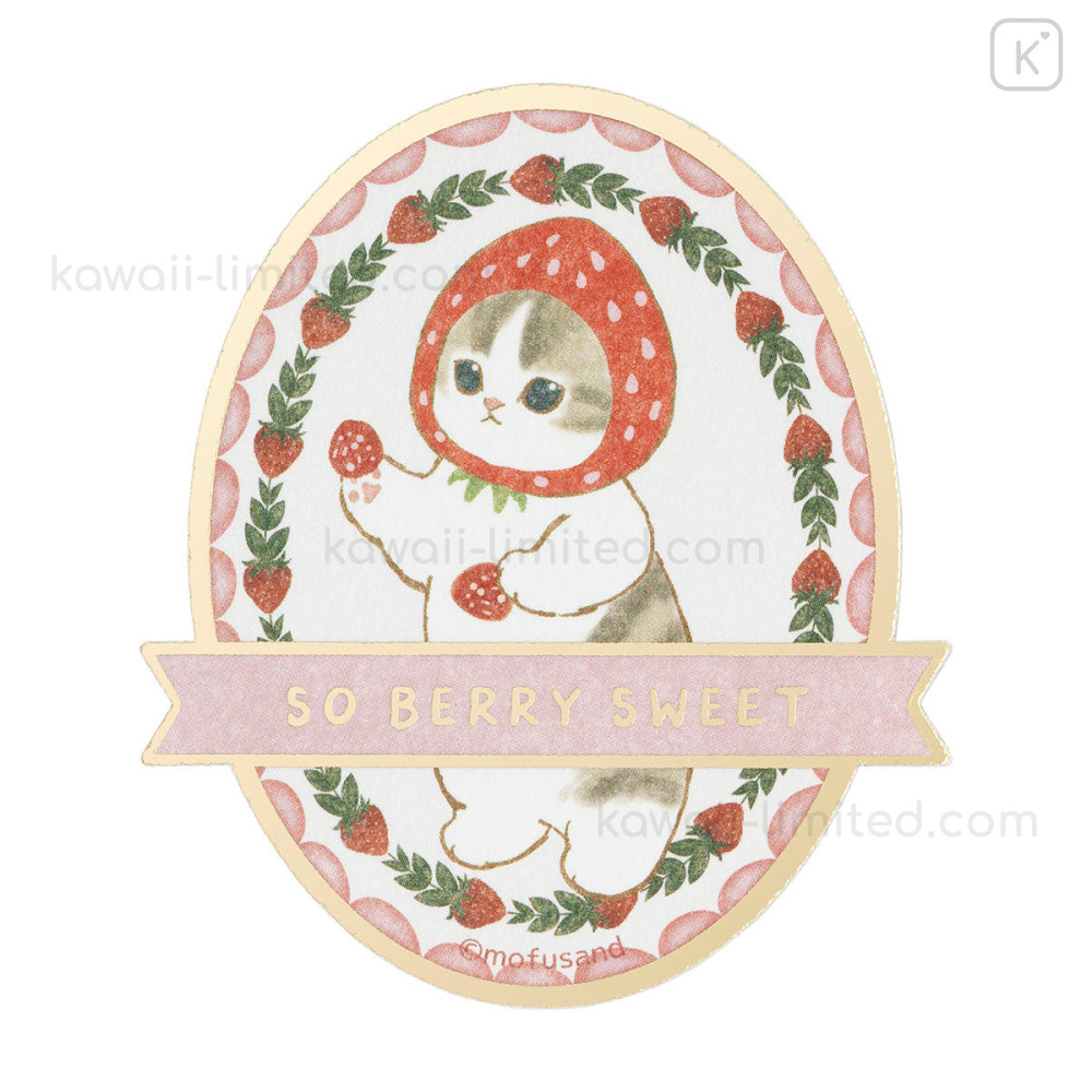 Japan Mofusand Gold Foil Vinyl Sticker - Mofusand Merci Strawberry Fruit Cat So Berry Sweet