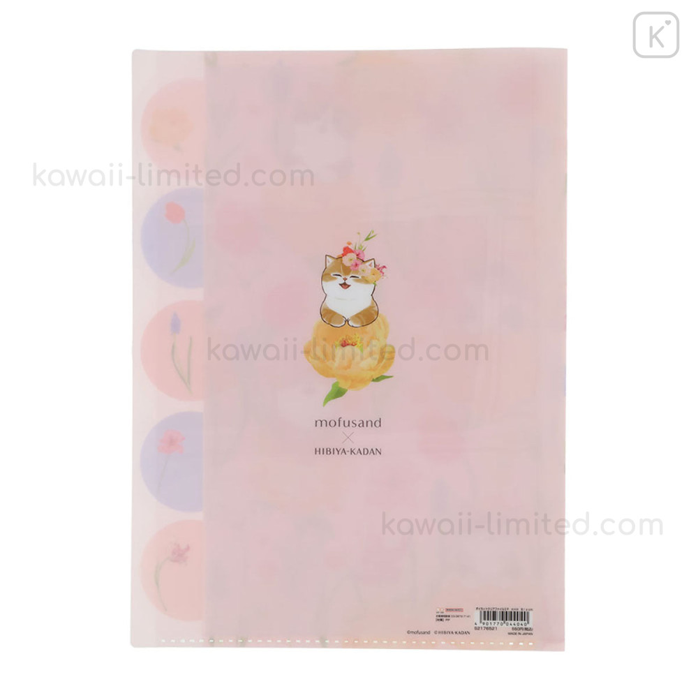Japan Mofusand Hibiya Kadan 5 Pockets A4 Index File Holder - Flora Cat Bloom