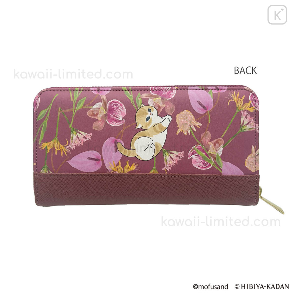 Japan Mofusand Hibiya Kadan Long Wallet - Flora Cat Dark Red Pink