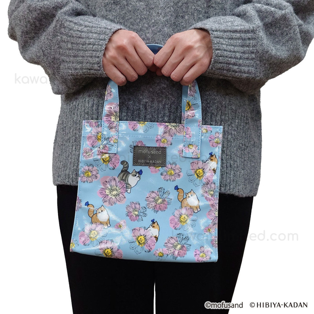 Japan Mofusand Hibiya Kadan Mini Tote Bag - Flora Cat Bloom Cosmos Blue Pink
