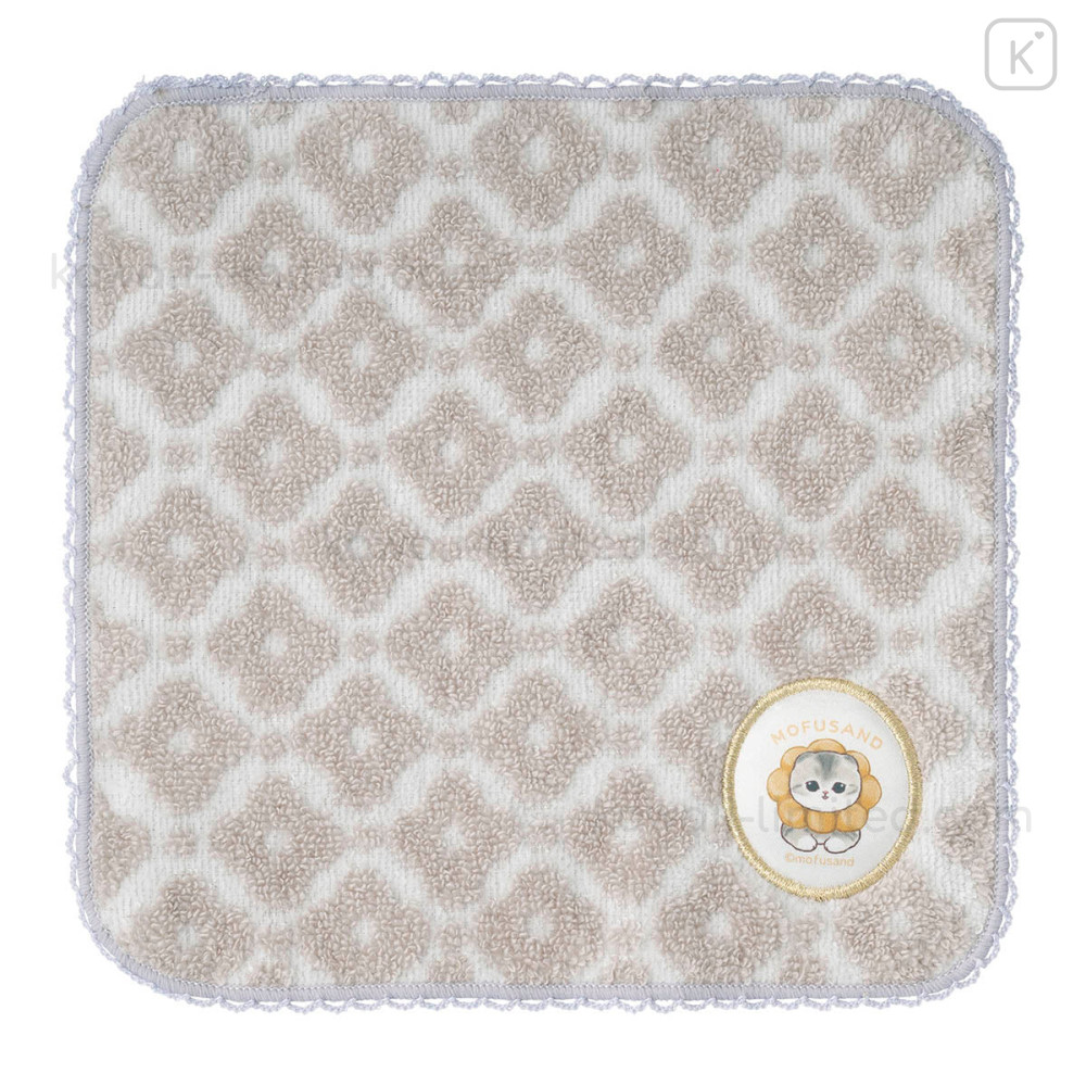 Japan Mofusand Mini Towel Jacquard Handkerchief - Mofusand Coffee And Donuts Cat Beige Grey