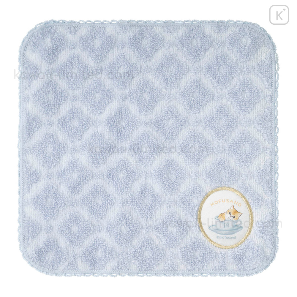 Japan Mofusand Mini Towel Jacquard Handkerchief - Mofusand Coffee And Donuts Cat Blue