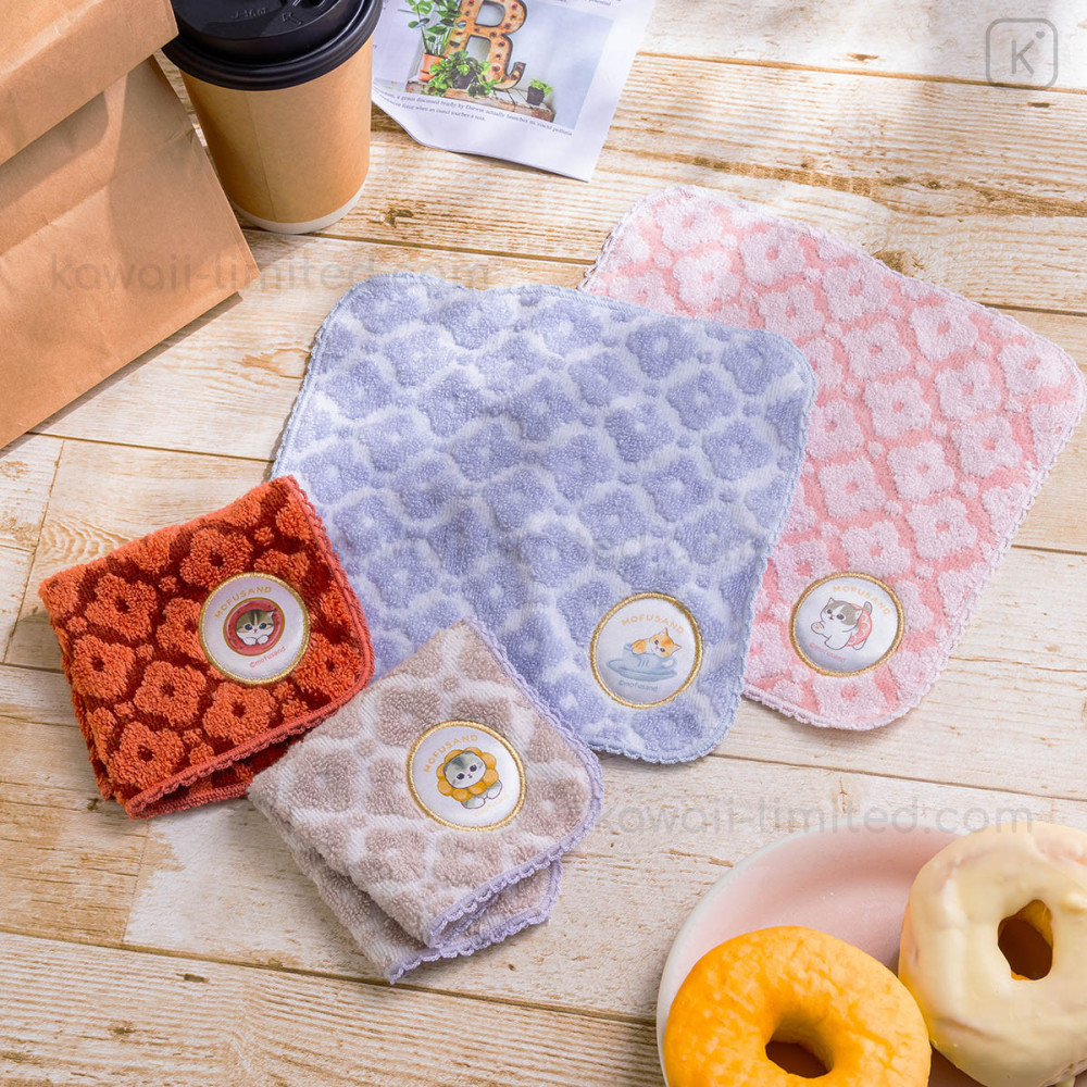 Japan Mofusand Mini Towel Jacquard Handkerchief - Mofusand Coffee And Donuts Cat Red