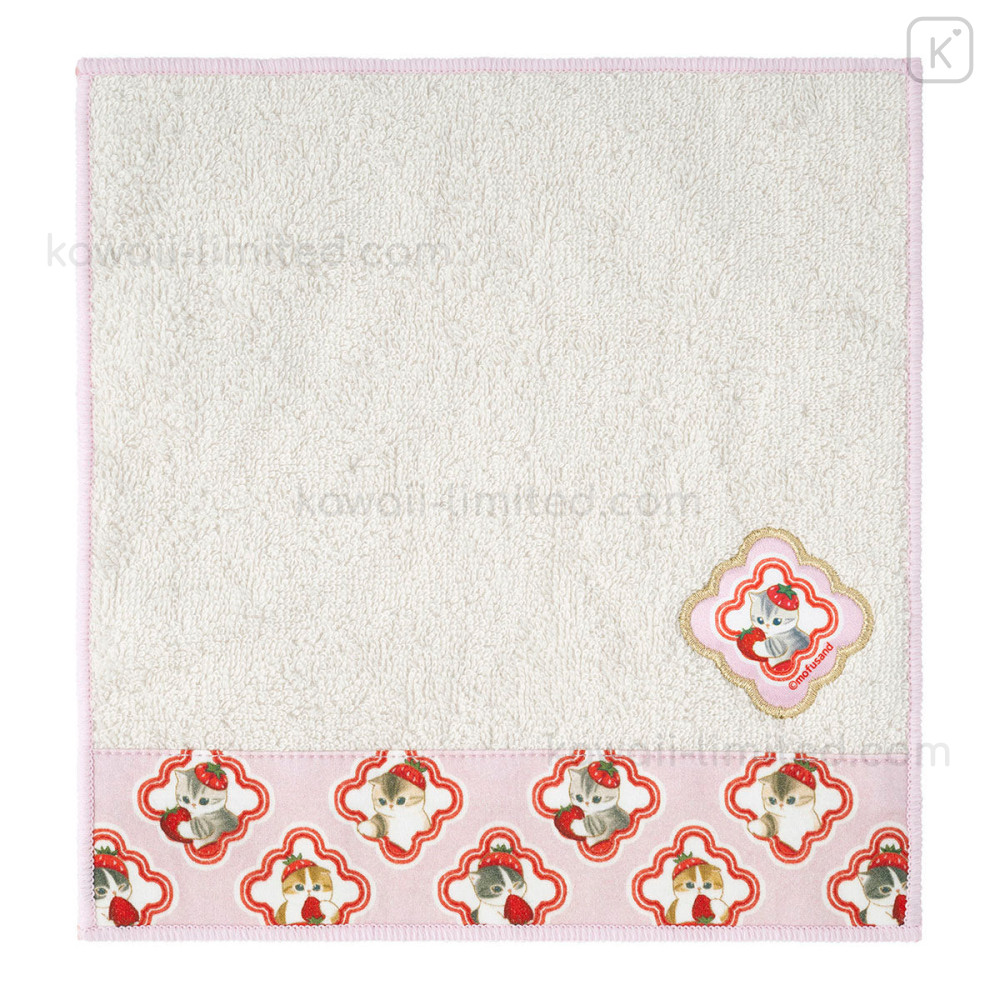 Japan Mofusand Mini Towel Jacquard Handkerchief - Mofusand Merci Strawberry Fruit Cat Rhombus