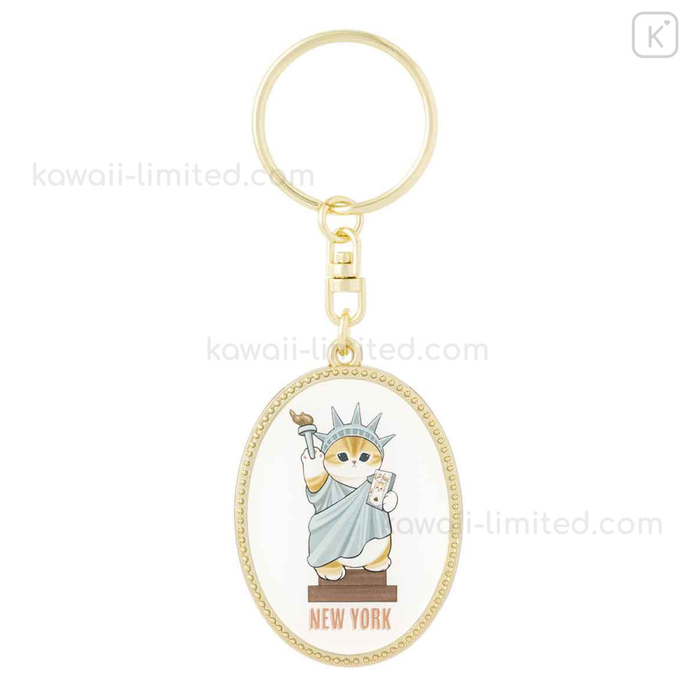 Japan Mofusand Oval Metal Keychain - Mofumofu Journey New York Statue of Liberty Cat Meow