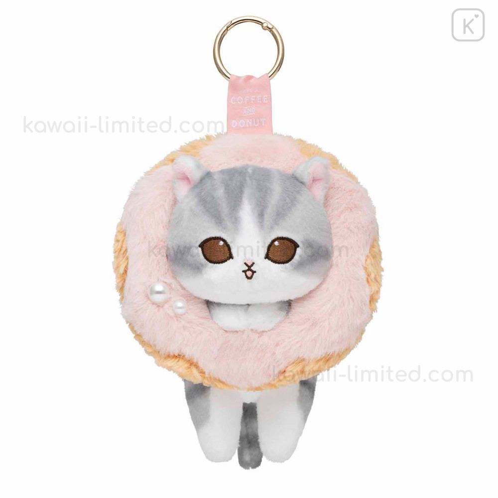 Japan Mofusand Plush Mascot with Carabiner Bag Charm - Mofusand Coffee And Donuts Cat Strawberry Cream