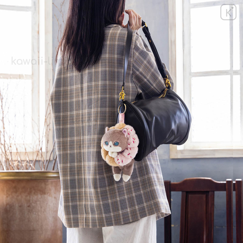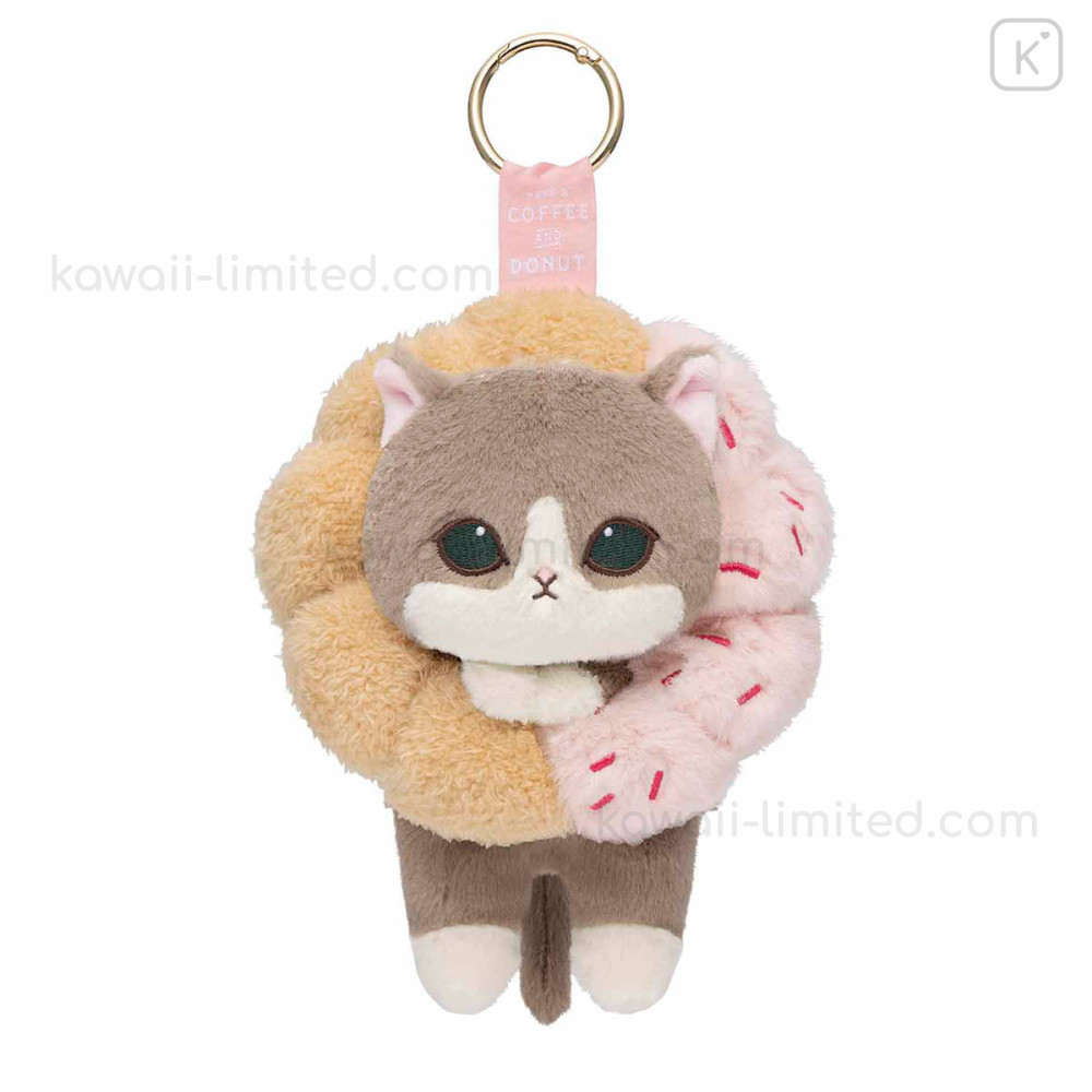 Japan Mofusand Plush Mascot with Carabiner Bag Charm - Mofusand Coffee And Donuts Cat Strawberry Cruller
