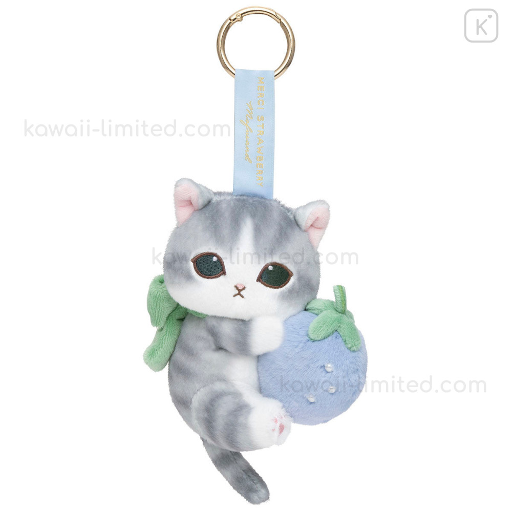 Japan Mofusand Plush Mascot with Carabiner Bag Charm - Mofusand Merci Strawberry Fruit Cat Blue