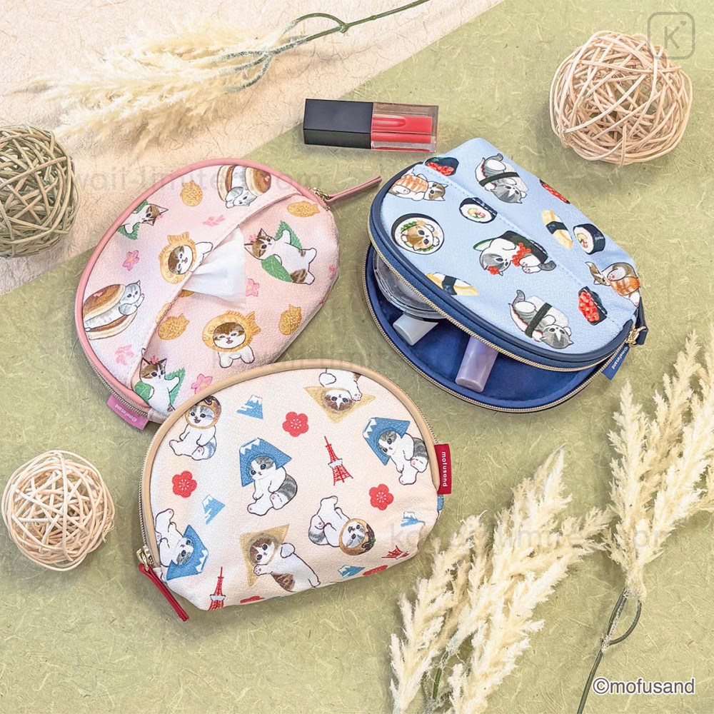 Japan Mofusand Pouch & Tissue Case - Chirimen Japanese Sweets Cat Pink