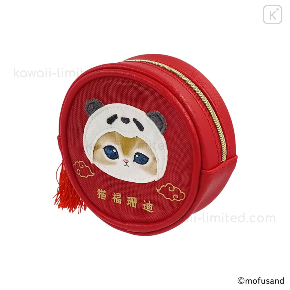 Japan Mofusand Round Mesh Pouch - Panda Cat Nyan Red