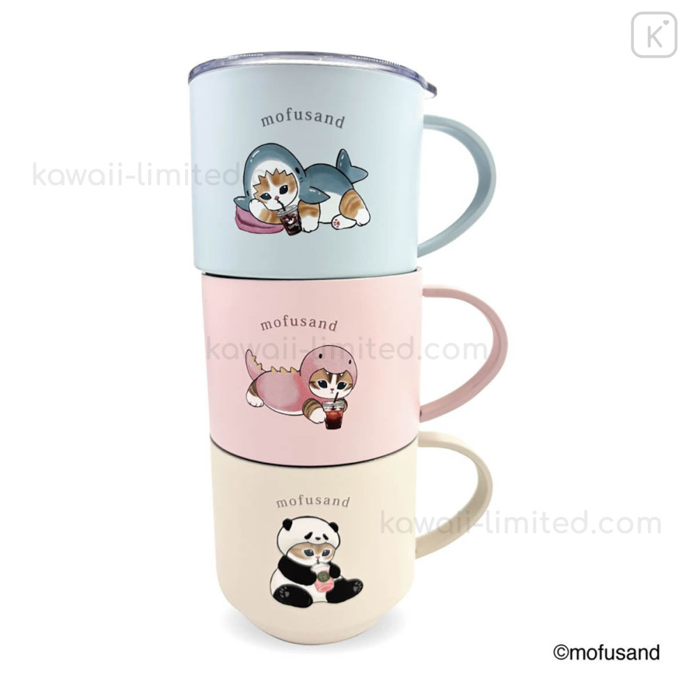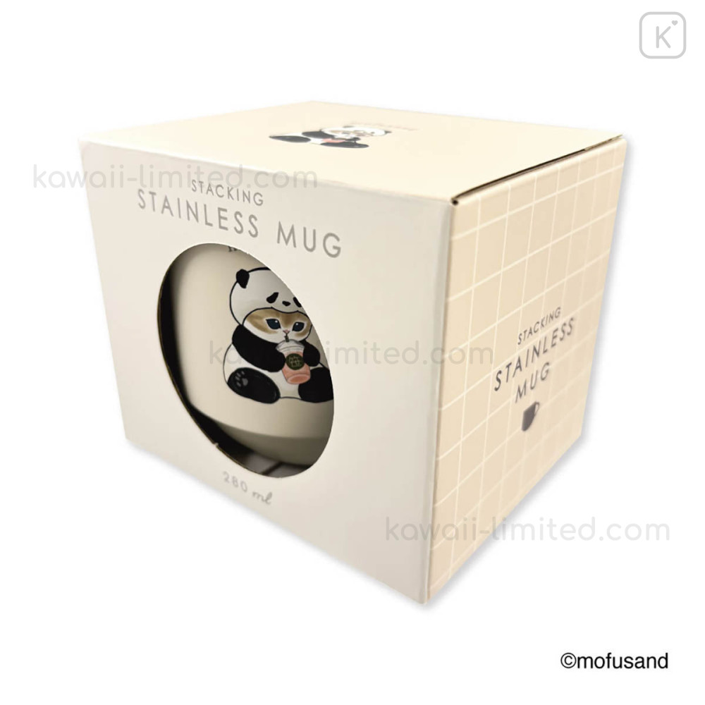 Japan Mofusand Stacking Stainless Steel Mug with Lid - Panda Cat Nyan Beige