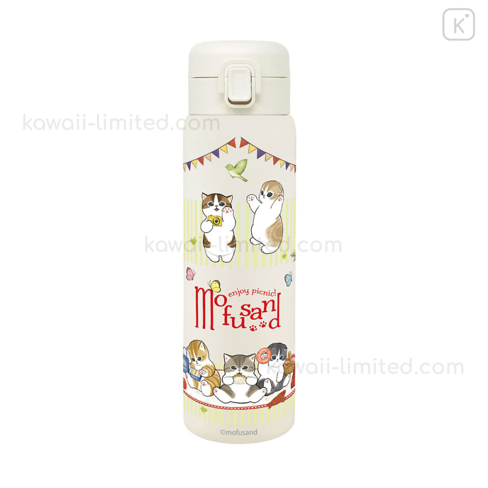 Japan Mofusand Stainless Steel One Push Bottle 480ml - Cat Enjoy Picnic
