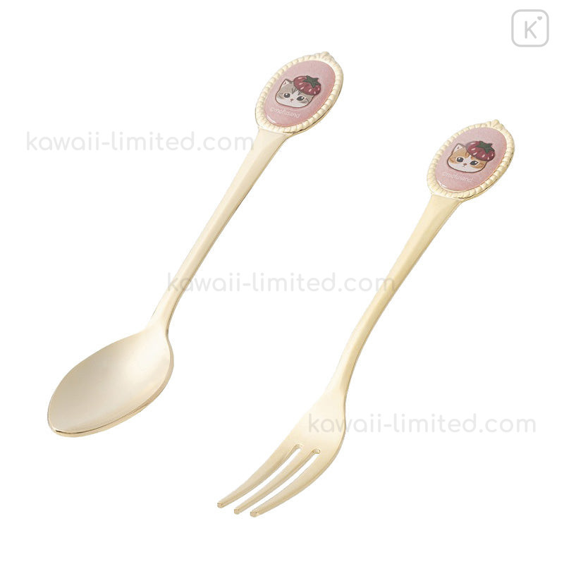 Japan Mofusand Stainless Steel Teaspoon & Spoon Set - Mofusand Merci Strawberry Fruit Cat
