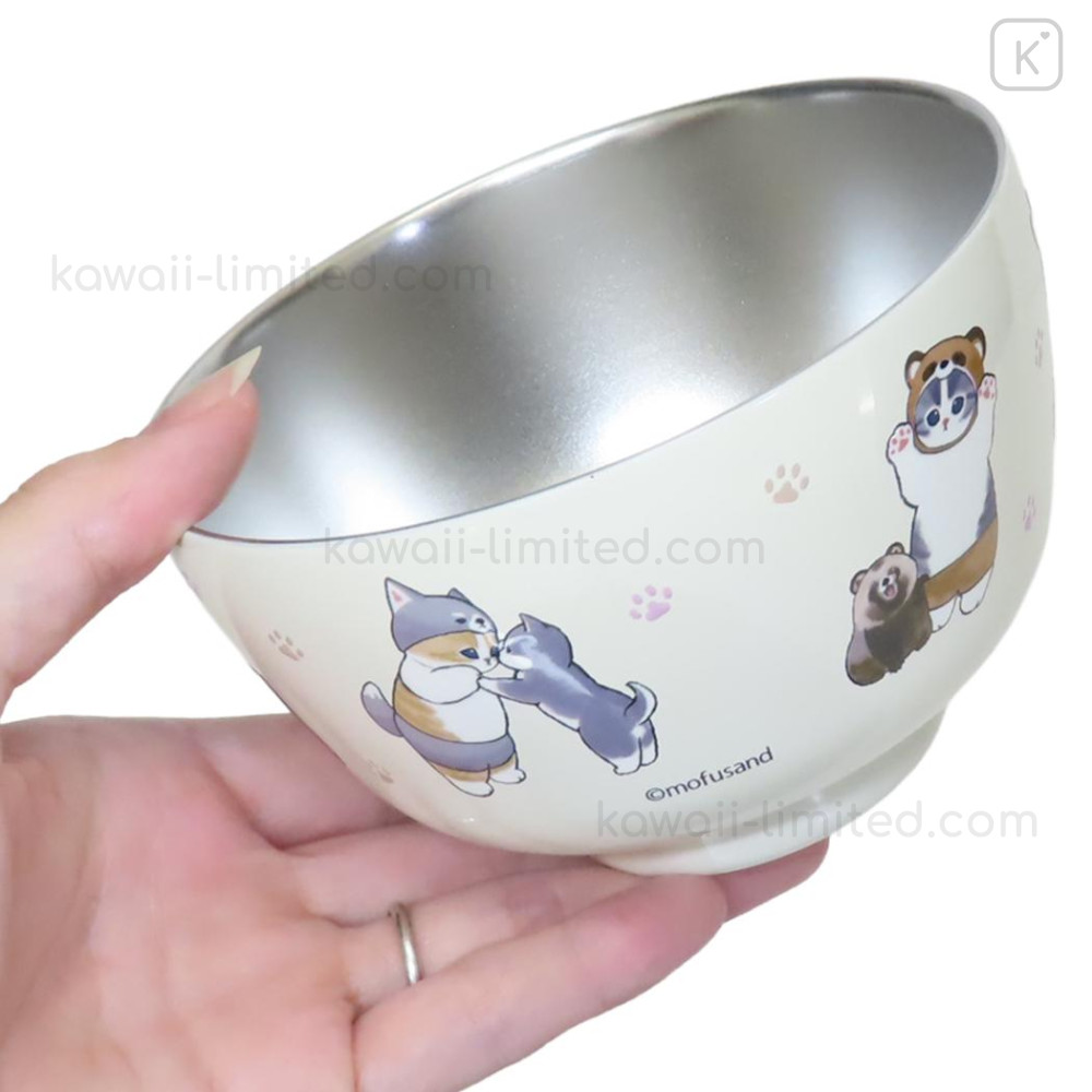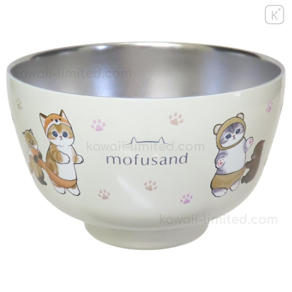 Japan Mofusand Stainless Vacuum Double Bowl 450ml - Cat Forest Animal Nyan Yellow
