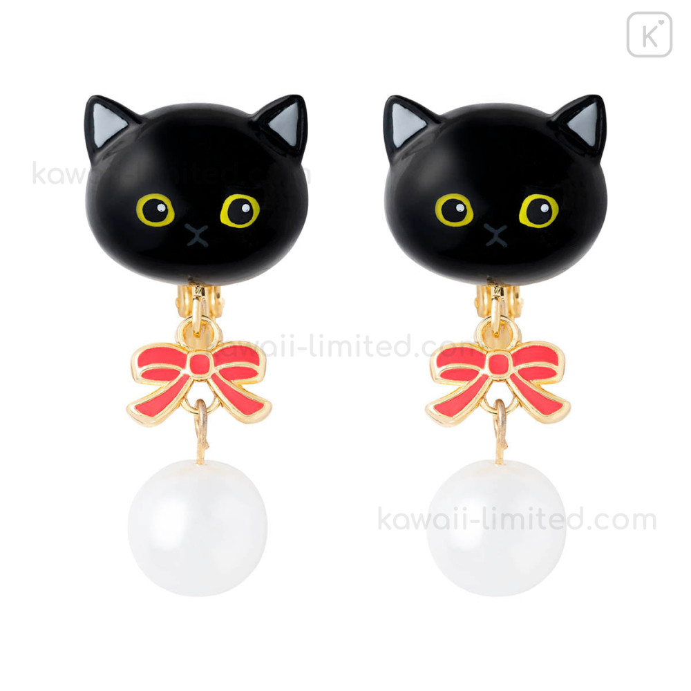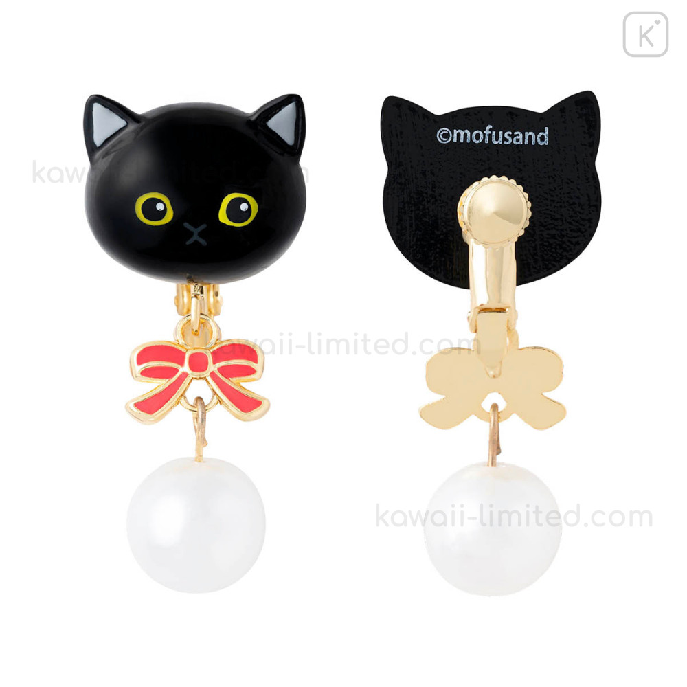 Japan Mofusand Swinging Clip-on Earrings - Pearl Ribbon Cat Black