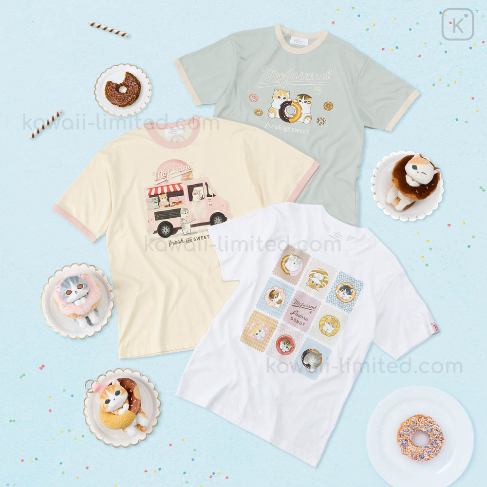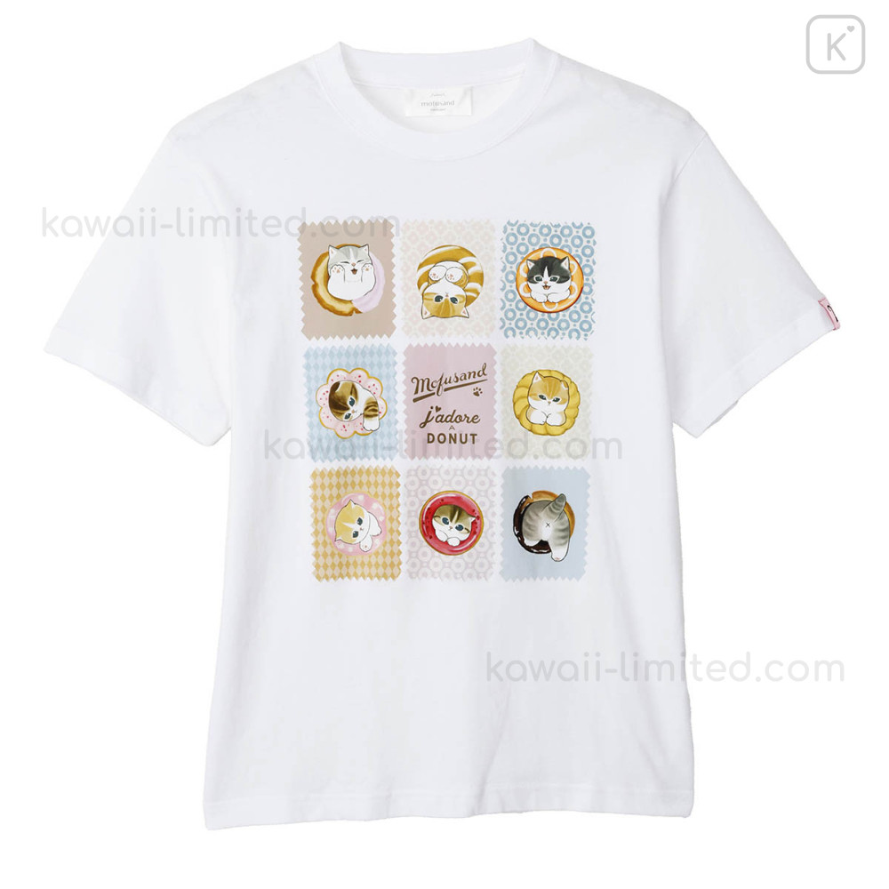 Japan Mofusand T-shirt (M) - Mofusand Coffee And Donuts Cat Illustrated Book White