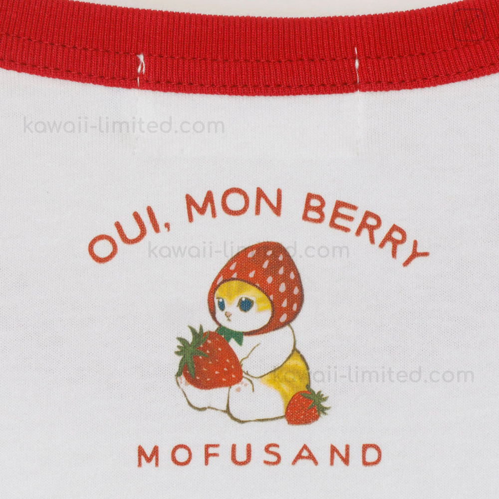 Japan Mofusand T-shirt (XL) - Mofusand Merci Strawberry Fruit Cat Oui Mon Berry White