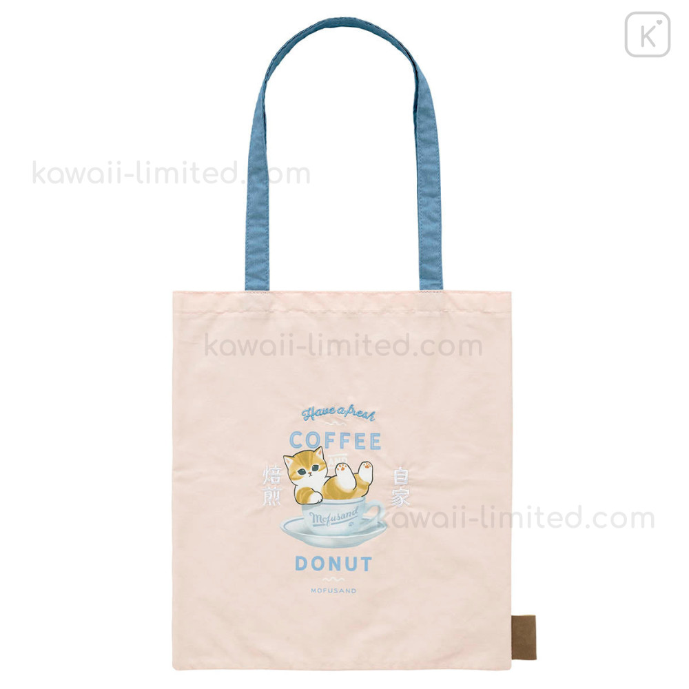 Japan Mofusand Tote Bag - Mofusand Coffee And Donuts Cat Pink Blue