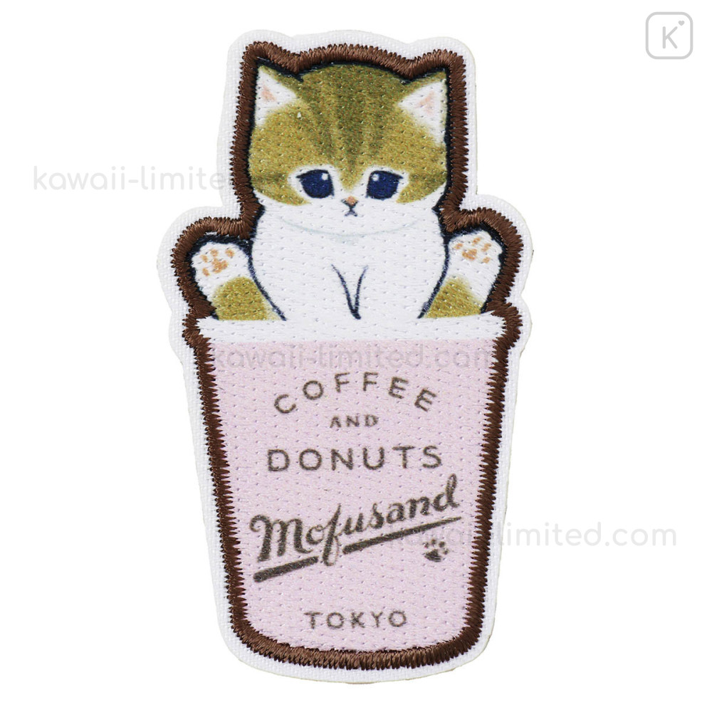 Japan Mofusand Versatile Iron-On and Sticker Patch - Mofusand Coffee And Donuts Cat Takeout Cup Pink