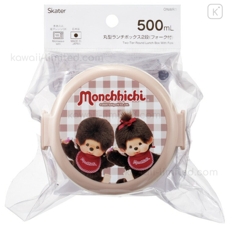 Japan Monchhichi 2 Tier Bento Lunch Box 500ml - Gingham Brown