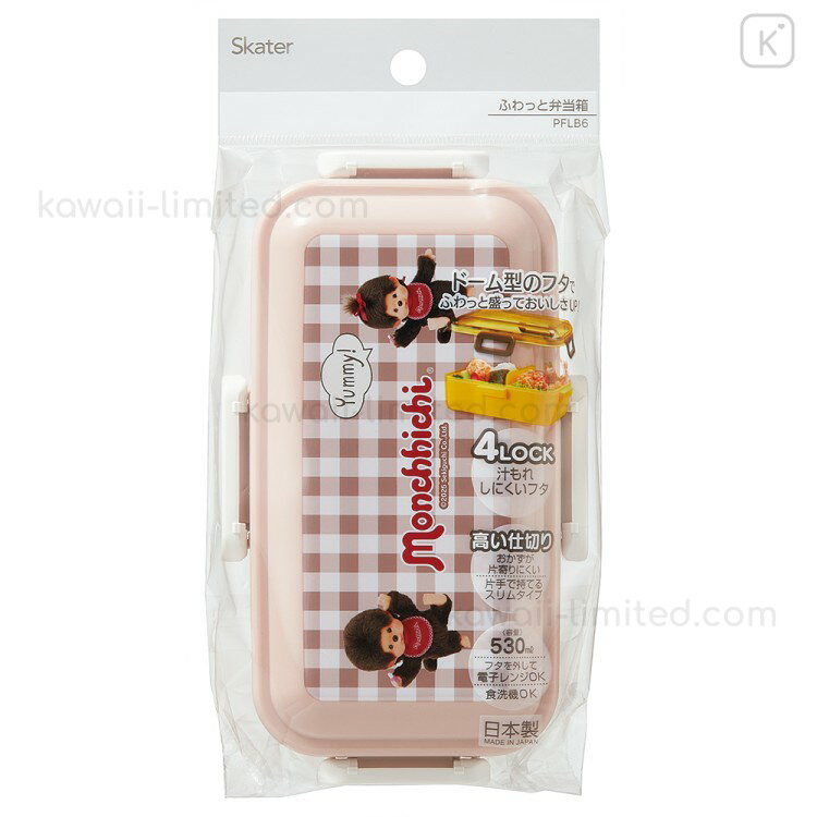 Japan Monchhichi Bento Lunch Box 530ml - Gingham Brown